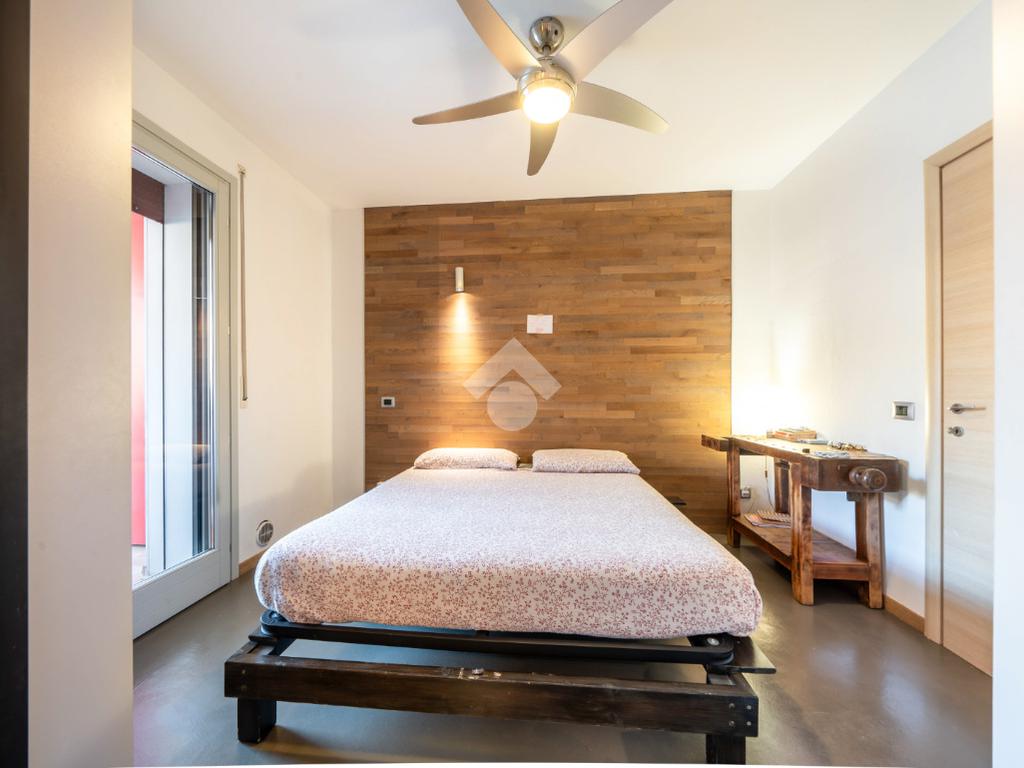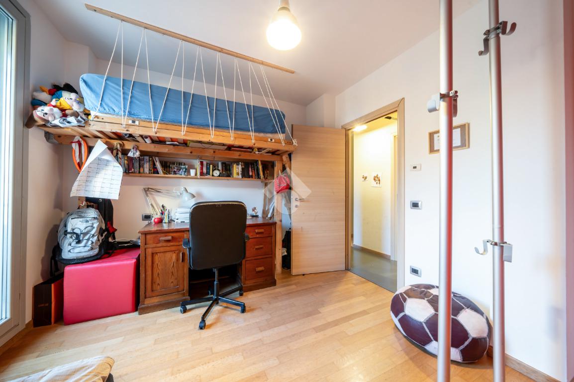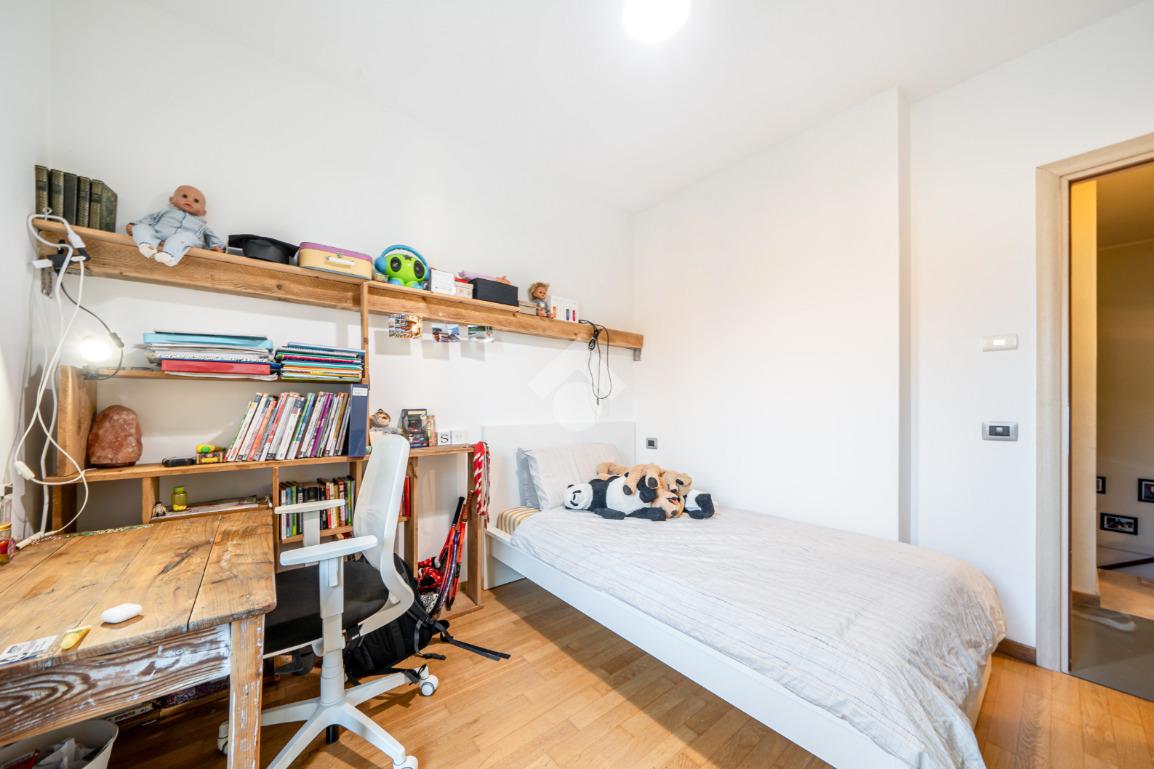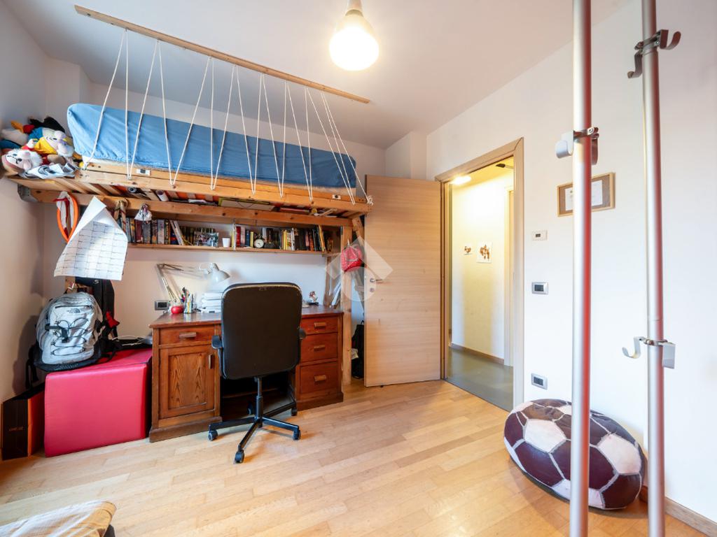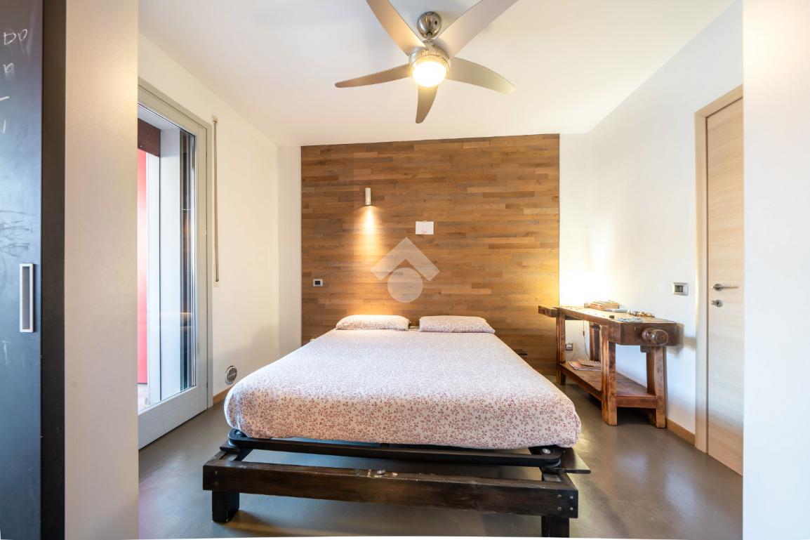 Al piano superiore si ha una camera padronale, con cabina armadio, e una zona studio con accesso diretto a loggia abitabile chiusa da vetrata, adibita a palestra.