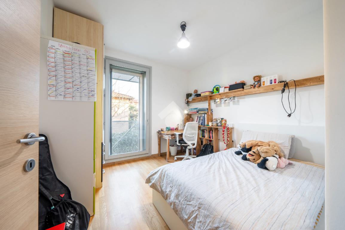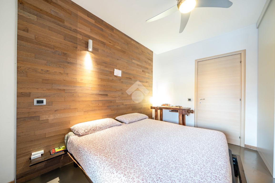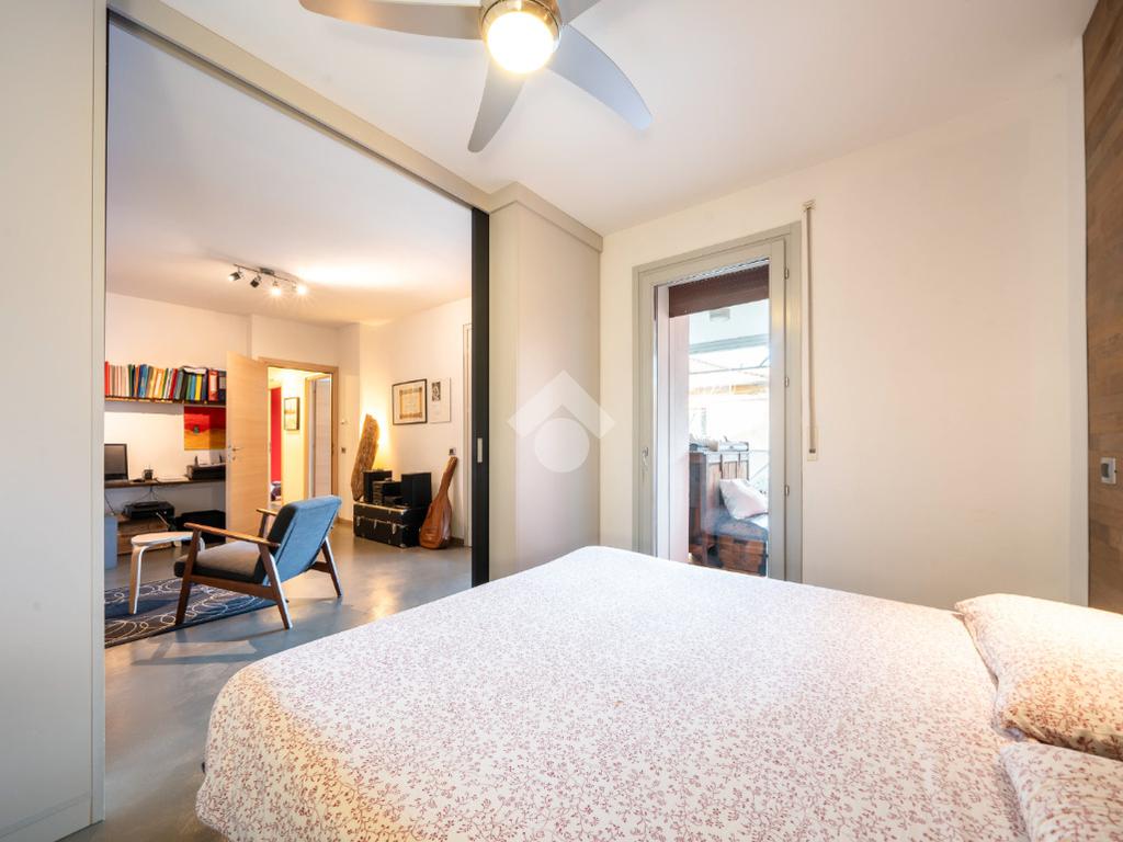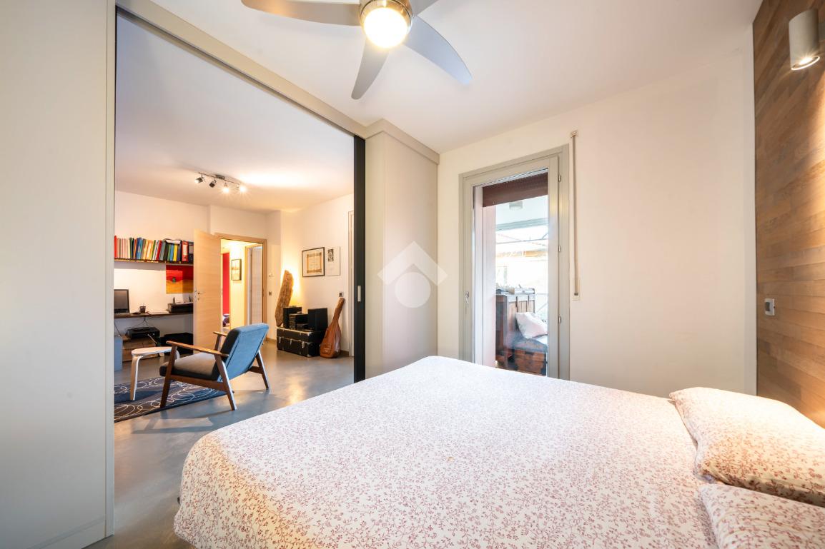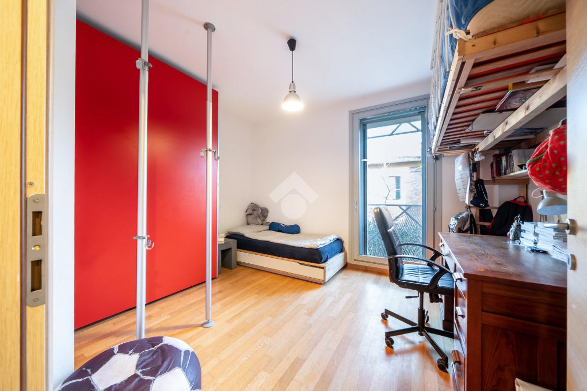 Al piano superiore si ha una camera padronale, con cabina armadio, e una zona studio con accesso diretto a loggia abitabile chiusa da vetrata, adibita a palestra.