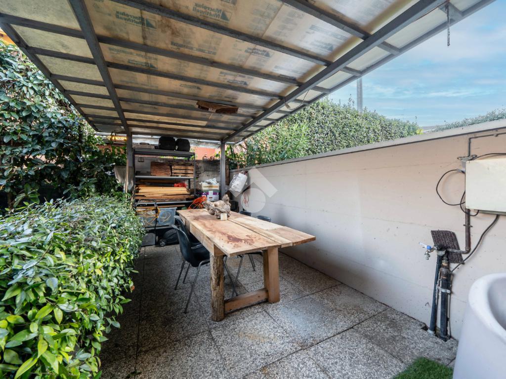 Al piano terra è presente un ampio soggiorno con cucina separata, che si affaccia sul portico e sul giardino privato, e un bagno adibito a lavanderia.